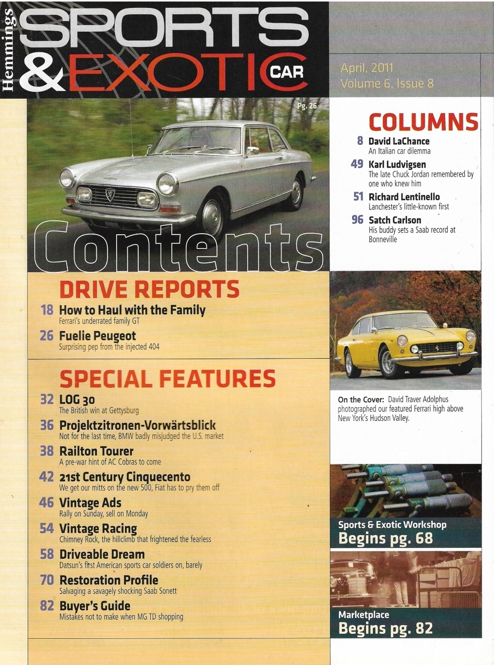 Reviews HEMMINGS SPORTS & EXOTIC CAR 2011 APR - FERRARI V-12 GTE, SAAB SONETT V4,PEUGEO