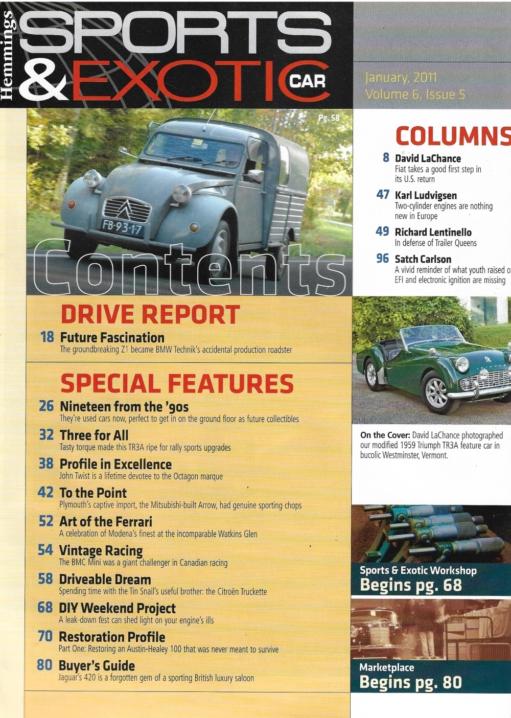 Reviews HEMMINGS SPORTS & EXOTIC CAR 2011 JAN - TR3A RALLY CAR, HEALEYS, BMW Z1