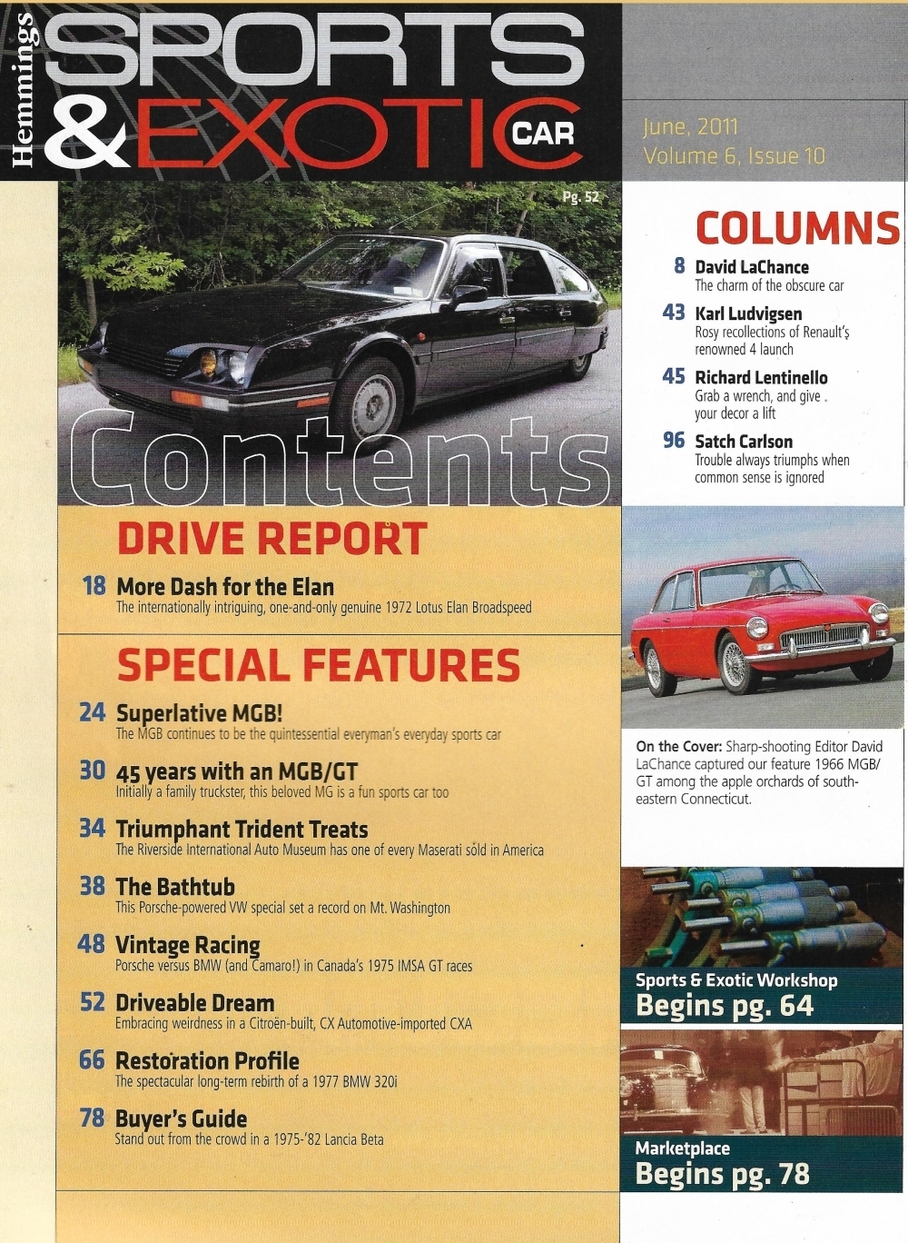Reviews HEMMINGS SPORTS & EXOTIC CAR 2011 JUNE - MGB,BMW 320i RESTO, LOTUS ELAN, LANCIA