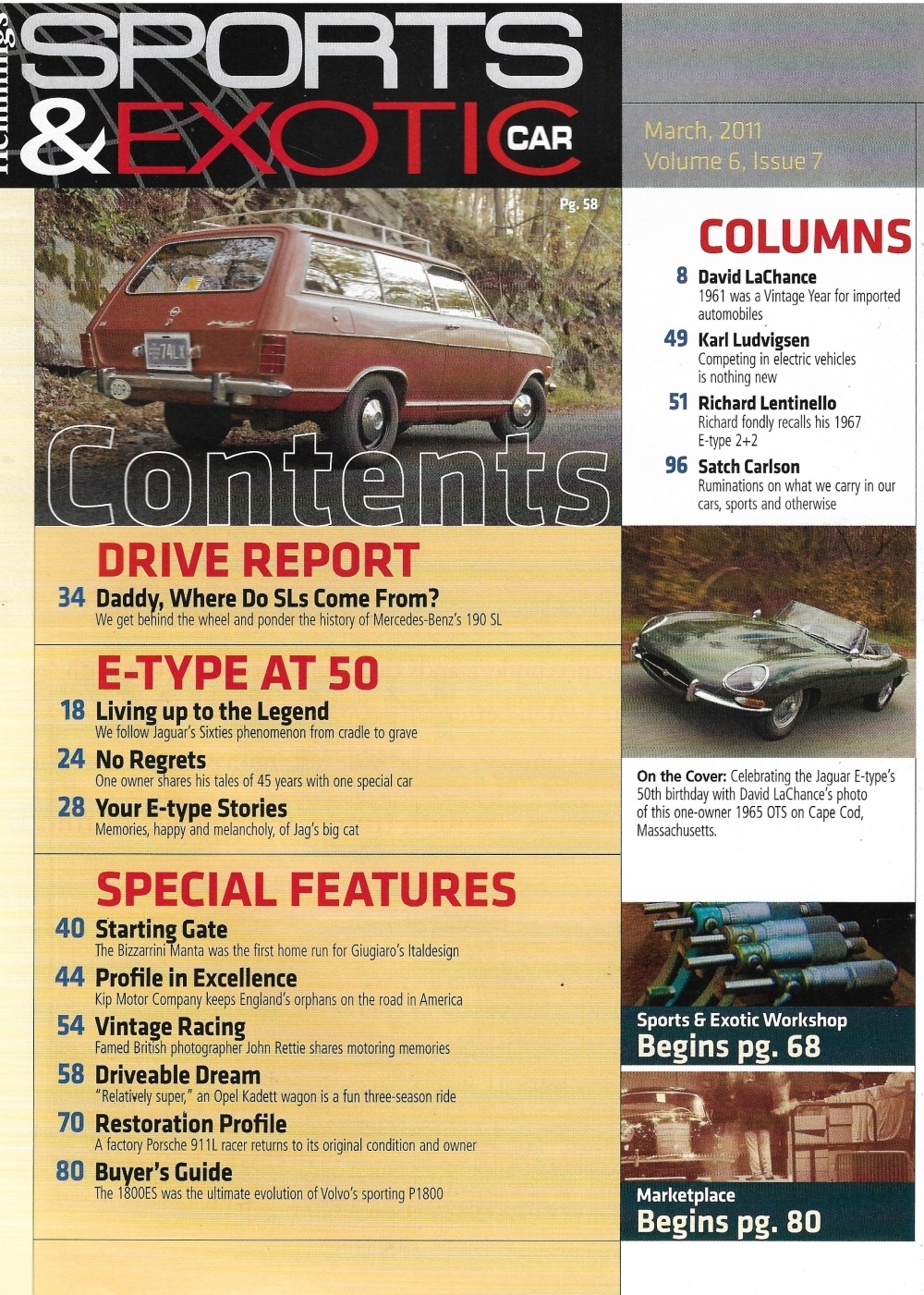 Reviews HEMMINGS SPORTS & EXOTIC CAR 2011 MAR - JAGUAR E-TYPE,VOLVO 1800ES, OPEL KADETT