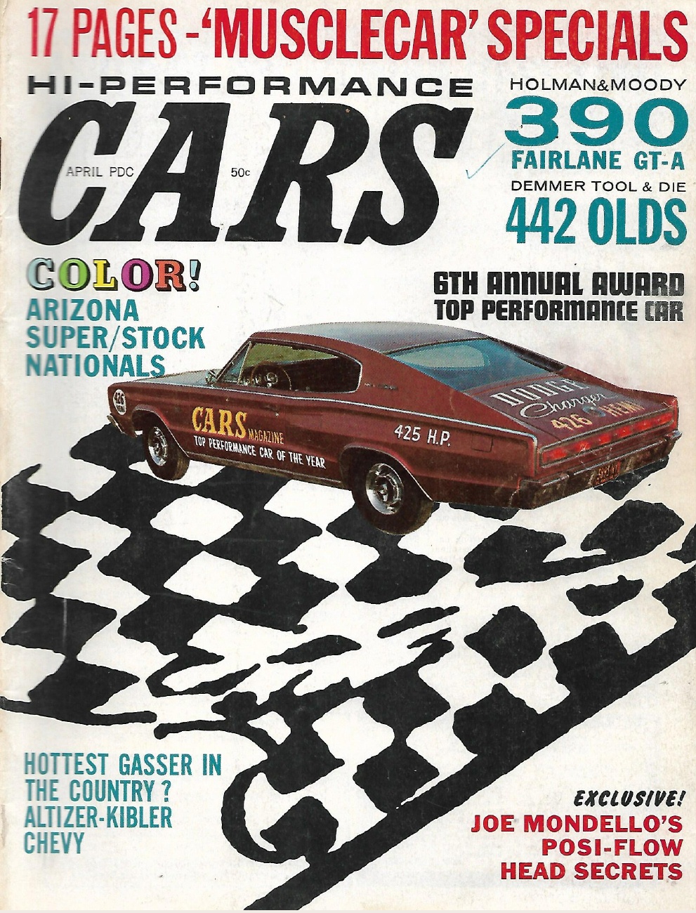 HI PERFORMANCE CARS 1966 APR - MUSCLE CARS,390 FAIRLANE, 442 OLDS,CAR'S CHARGER