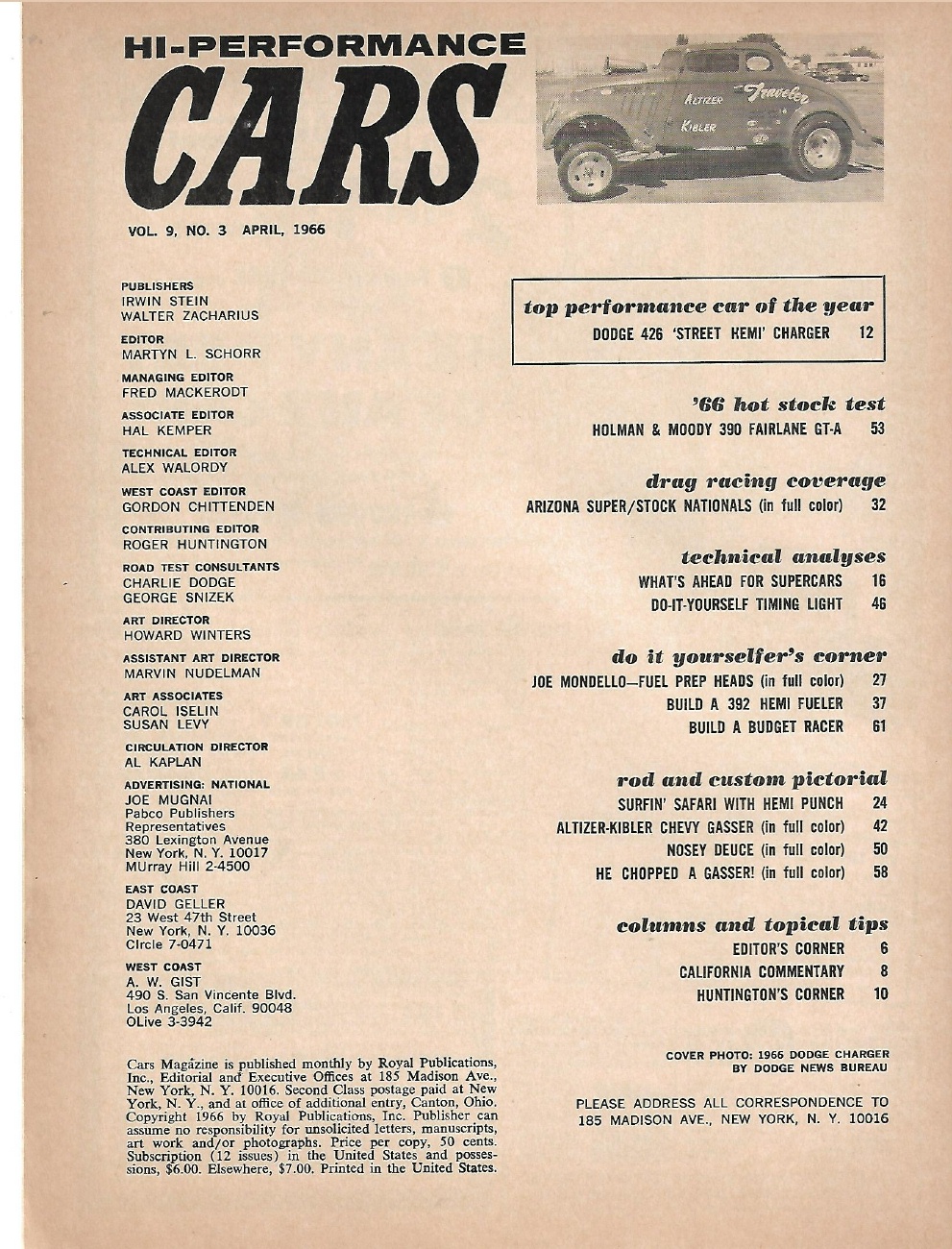 Reviews HI PERFORMANCE CARS 1966 APR - MUSCLE CARS,390 FAIRLANE, 442 OLDS,CAR'S CHARGER