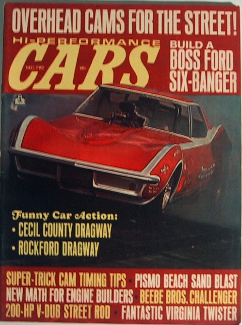 HI PERFORMANCE 1970 DEC SOX & MARTIN CUDA, T/A RACING This issue covers the following topics: 1) Overhead cams for the street 2) Tips in building a Boss 289 3) Hot goodies for small block Chevys, Fords and Mopars 4) A straight 6 Ford powered dragster 5) A look at Sox & Martin's screaming Cuda, 6) A sweet '70 Dodge Challenger AA/Funny car 7) A great article of gear drive camshafts 8) Coverage of the 7th CARS Super Shock/Funny Car Nationals 9) The Beebe AA/FC Dodge Challenger 10) Engine/performance formulas 11) 12) Castronovo's wild Dodge Charger flipper 13) Trans Am racing at Donnybrook AND MANY MORE CAR AND TECH ARTICLES |