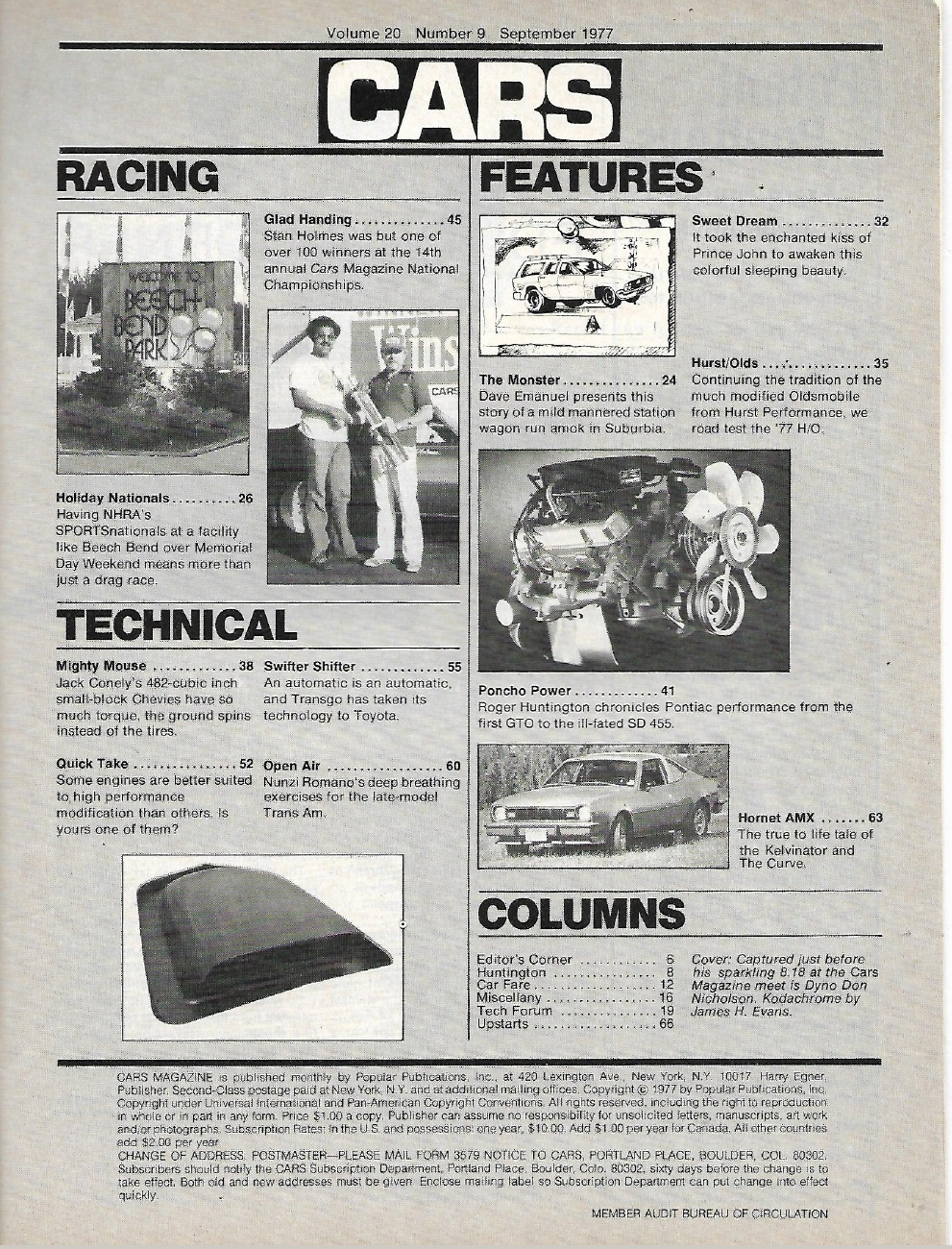 Reviews HI PERFORMANCE CARS 1977 SEPT - 482 SMALL BLOCK CHEVY, '77 HUST/OLDS TEST