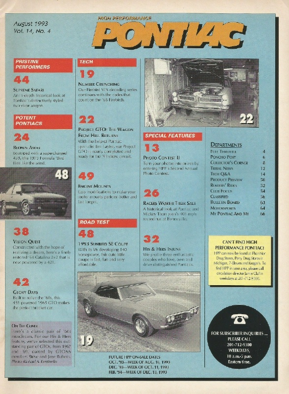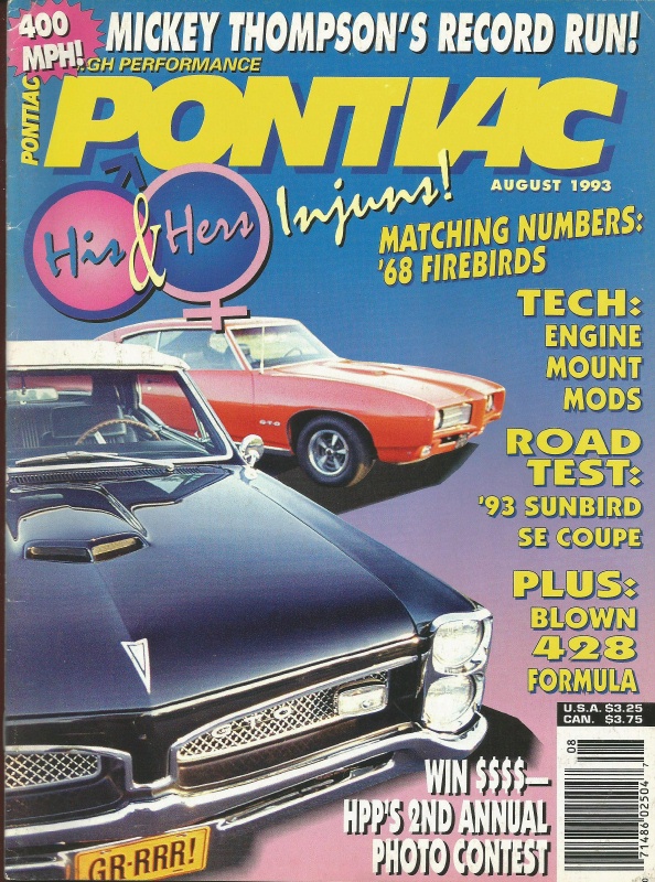 Reviews HIGH PERFORMANCE PONTIAC 1993 AUG - SUNBIRD GT, MICKEY T, BONNEVILLE & PONTIAC