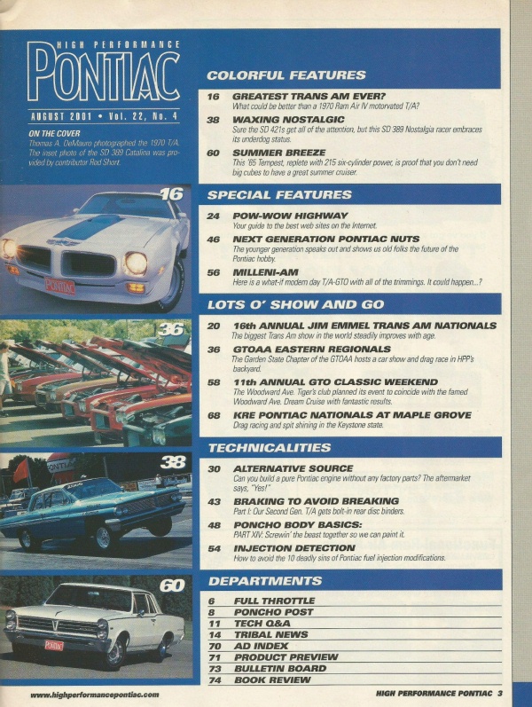 Reviews HIGH PERFORMANCE PONTIAC 2001 AUG - FI TECH, '62 SD CAT, '70 T/A RAM AIR IV