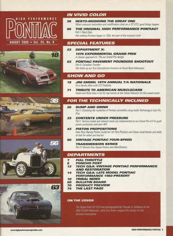 Reviews HIGH PERFORMANCE PONTIAC 2003 AUG - 4-SPEED HISTORY, 1926 RACER, CAM SCIENCE