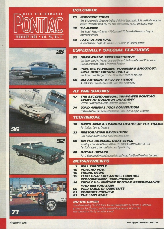 Reviews HIGH PERFORMANCE PONTIAC 2005 FEB - BOTTLE DUEL, HOT NEW GTO, 65 BONNIE LIMO