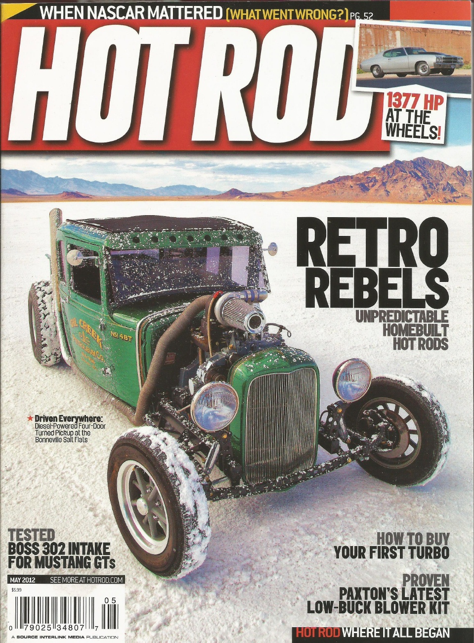 1. Scoping out Hot Rods-n-Hobbies/Wood N' Carr project '40 Willys woody2. Bryan Fuller & his radical '60 Cadillac 'ThunderTaker'3. Racecar numbering artwork4. JR Drake's sweet Harley-powered Deuce5. Memories from '626. Bryant Goldstone's sick '70 Chevelle SS7. Chad Hartmann's Buick turbo V6-powered '63 Nova convertible8. Bob Larson's wild '38 Dodge rat rod9. Mike Allison's 'what-2-hell' rat rod trike10. Jeff Madden's beautiful '31 A rat rod truck (Cover Car) 11. Greg Richardson's '36 Plymouth rad rod truck12. Robin Moody's cool'71 Toyota Hilux13. Randy Ellis' Willys CJ-2A Jeep14. Looking back to the days Hot Rod covered NASCAR15. How to buy your first turbo16. Taking a '68 Ranchero across an Arizona desert (Part 2)17. Checking out the Novi 1200 blower18. Coyote gets a new Boss 302 intakePlus many other hot items.