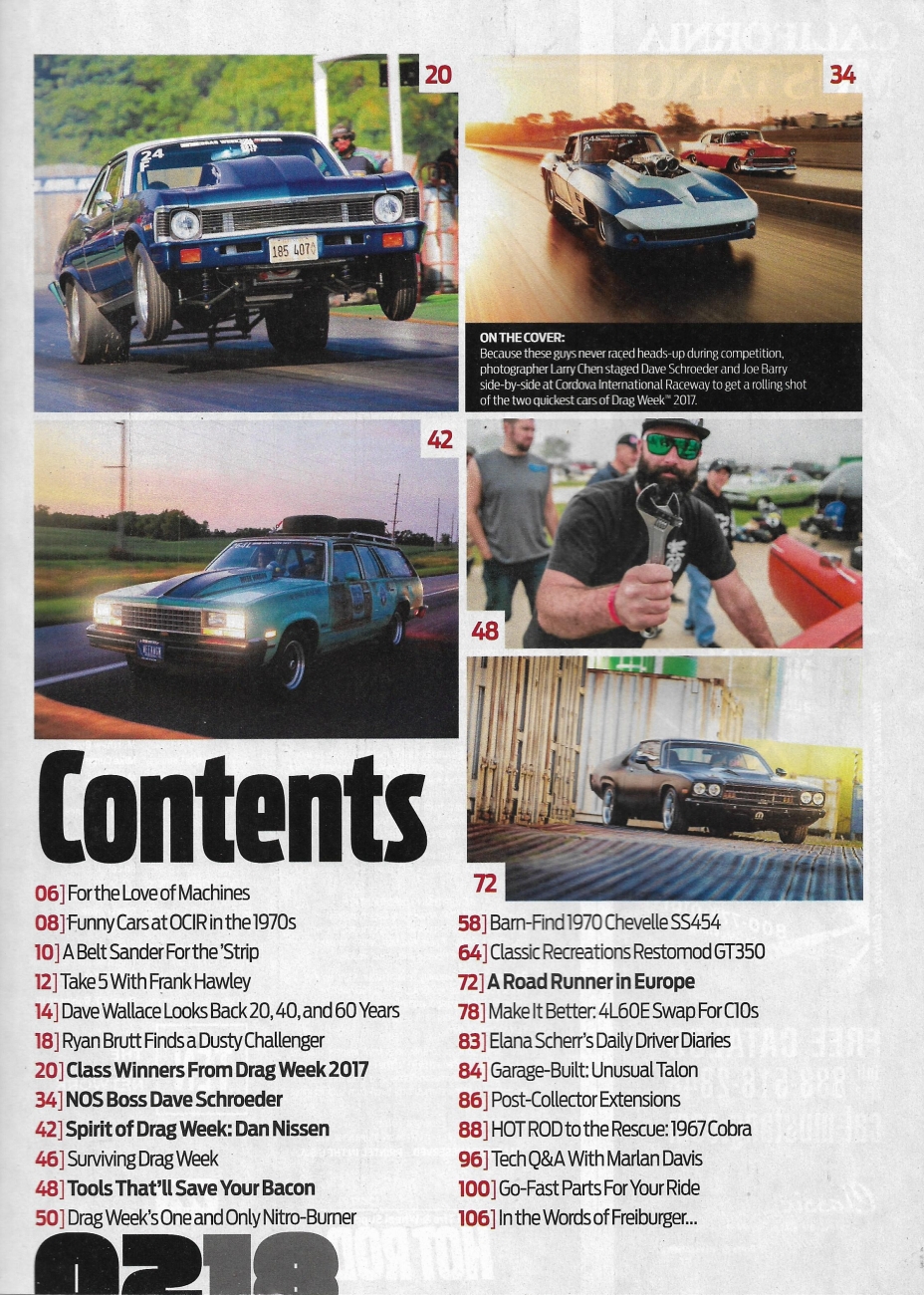 Reviews HOT ROD 2018 FEB - MONTE SMITH, FASTEST STREET CARS, SCHROEDER, '66 CORVETTE