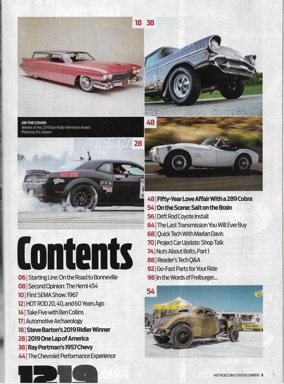 Reviews HOT ROD 2019 DEC - '19 RIDLER AWARD, SMALL BLOCK COBRA, '632 TWIN TURBO CHEVY