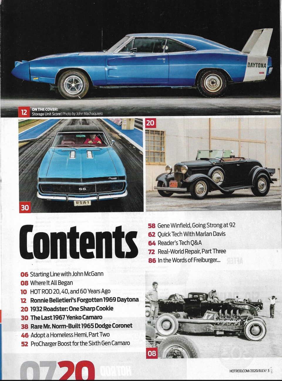 Reviews HOT ROD 2020 JULY - '69 DAYTONA, '67 YENKO CAMARO,'65 CORONET 500, '32 ROADSTER