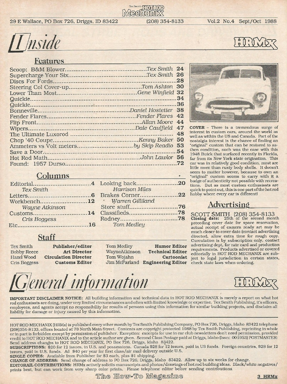 HOT ROD MECHANIX 1988 SEPT - BONNEVILLE, AMP V VOLT, FENDER FLARES