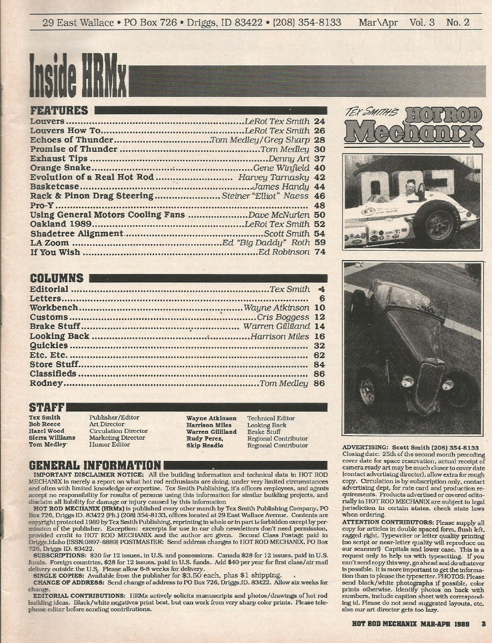 Reviews HOT ROD MECHANIX 1989 MAR - LOUVER SPECIAL, GM ELEC FAN, OAKLAND, LA ZOOM