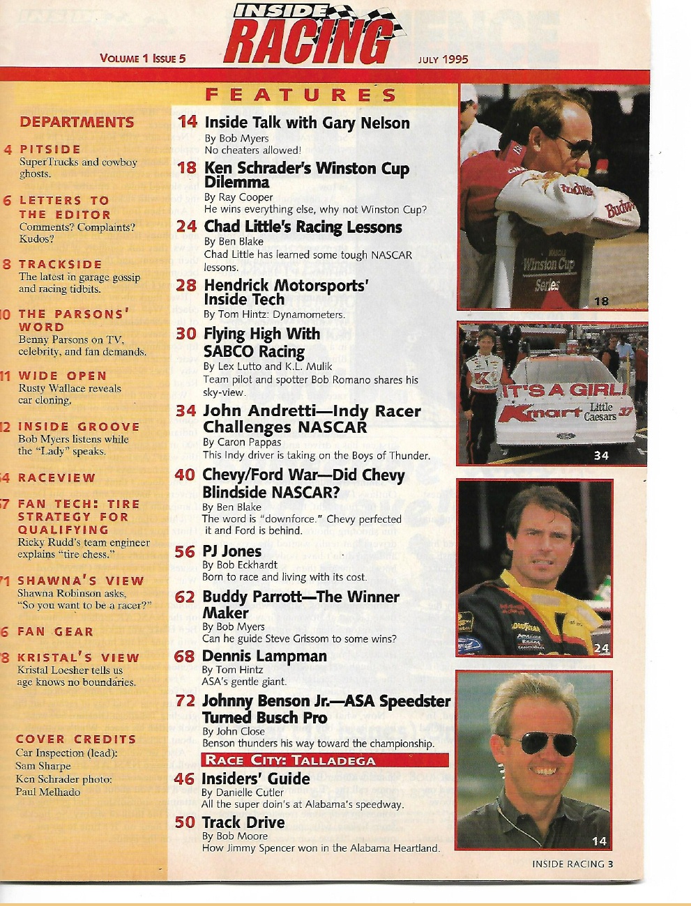 Reviews INSIDE RACING 1995 JULY - GARY NELSON, LITTLE V BENSON, ANDRETTI, WILL JONES