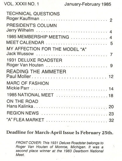 Reviews MODEL A NEWS 1985 JAN - 1931 DELUXE ROADSTER, AMMETER, BMPERETTE, STEMS