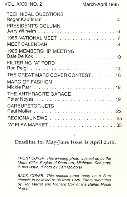 Reviews MODEL A NEWS 1985 MAR - OIL FILTERS, CARBURETOR JETS, CAM DURATION