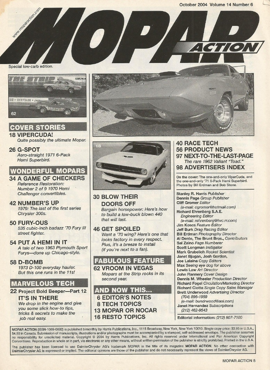 MOPAR ACTION 2004 OCT - HEMI SUPERBIRD & DROPTOP CHALLENGER, 79 300
