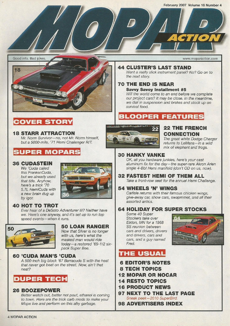 MOPAR ACTION 2007 FEB - GSS HEMI SHALLENGER, 6-P BEE, ADVENTURER III