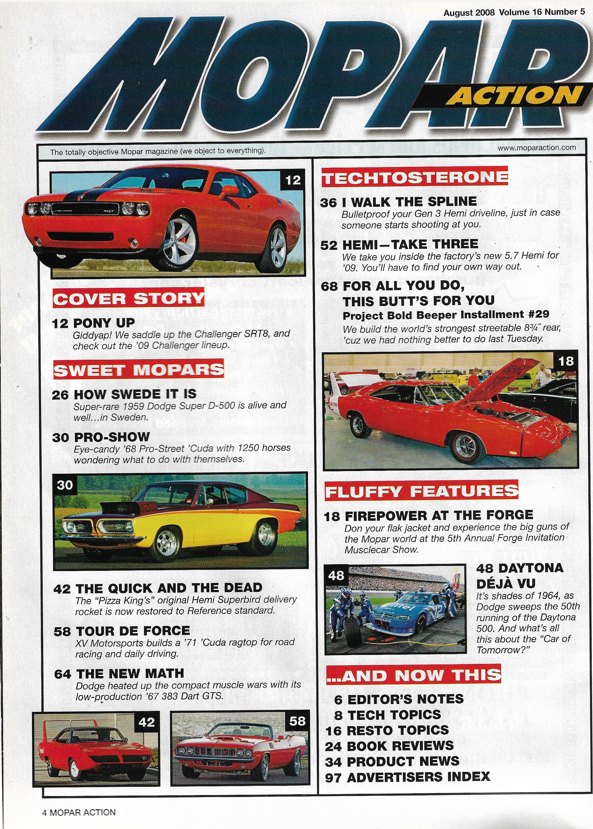 Reviews MOPAR ACTION 2008 AUG - '09 CHALLENGERS, NEW 09 HEMI, '67 383 DART GTS, SUPER D