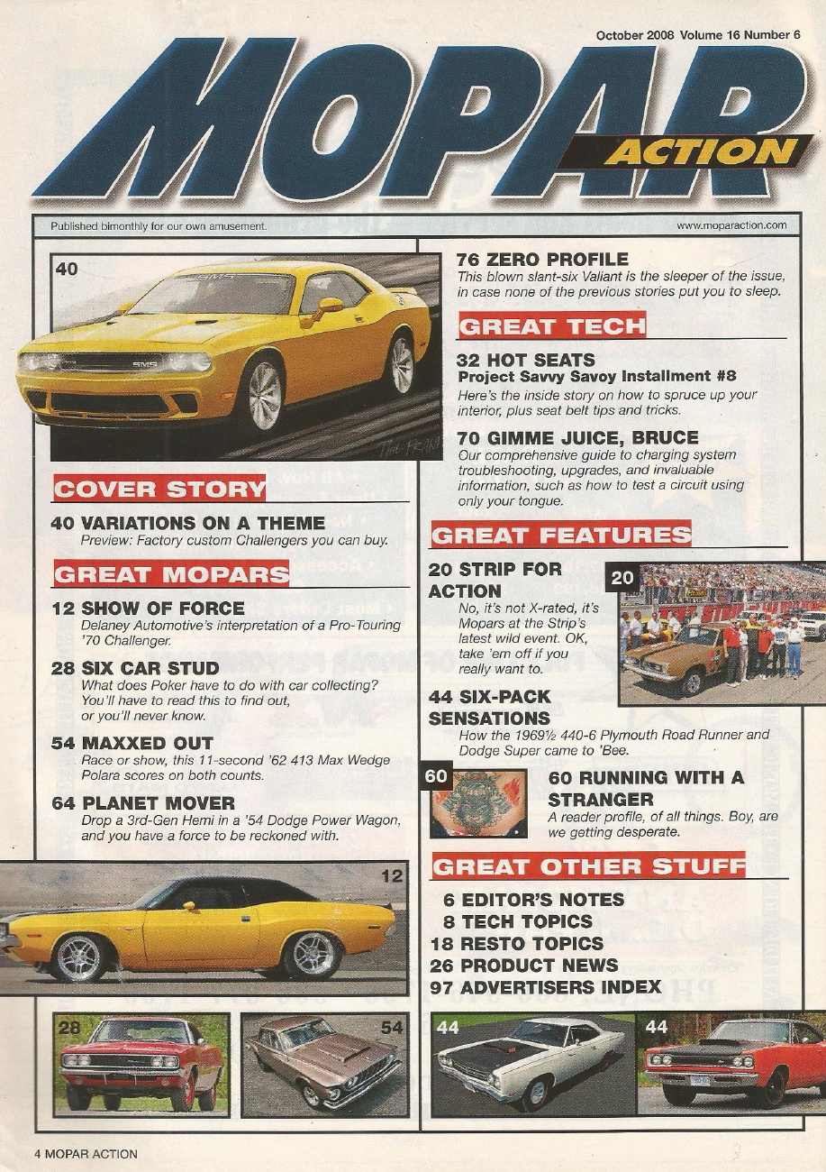 MOPAR ACTION 2008 OCT - BLOWN SLANT-6, 69 440 6-PACK Spcl, V10 CHALLENGER