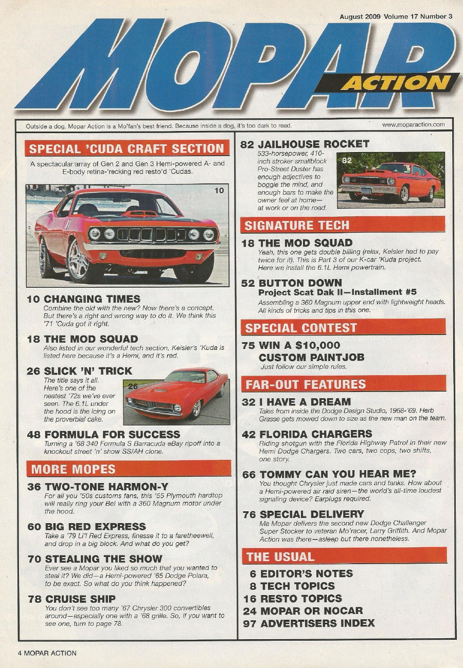 Reviews MOPAR ACTION 2009 AUG - CUDA Spcl, LiL RED, CHALLENGER & DART CONCEPTS