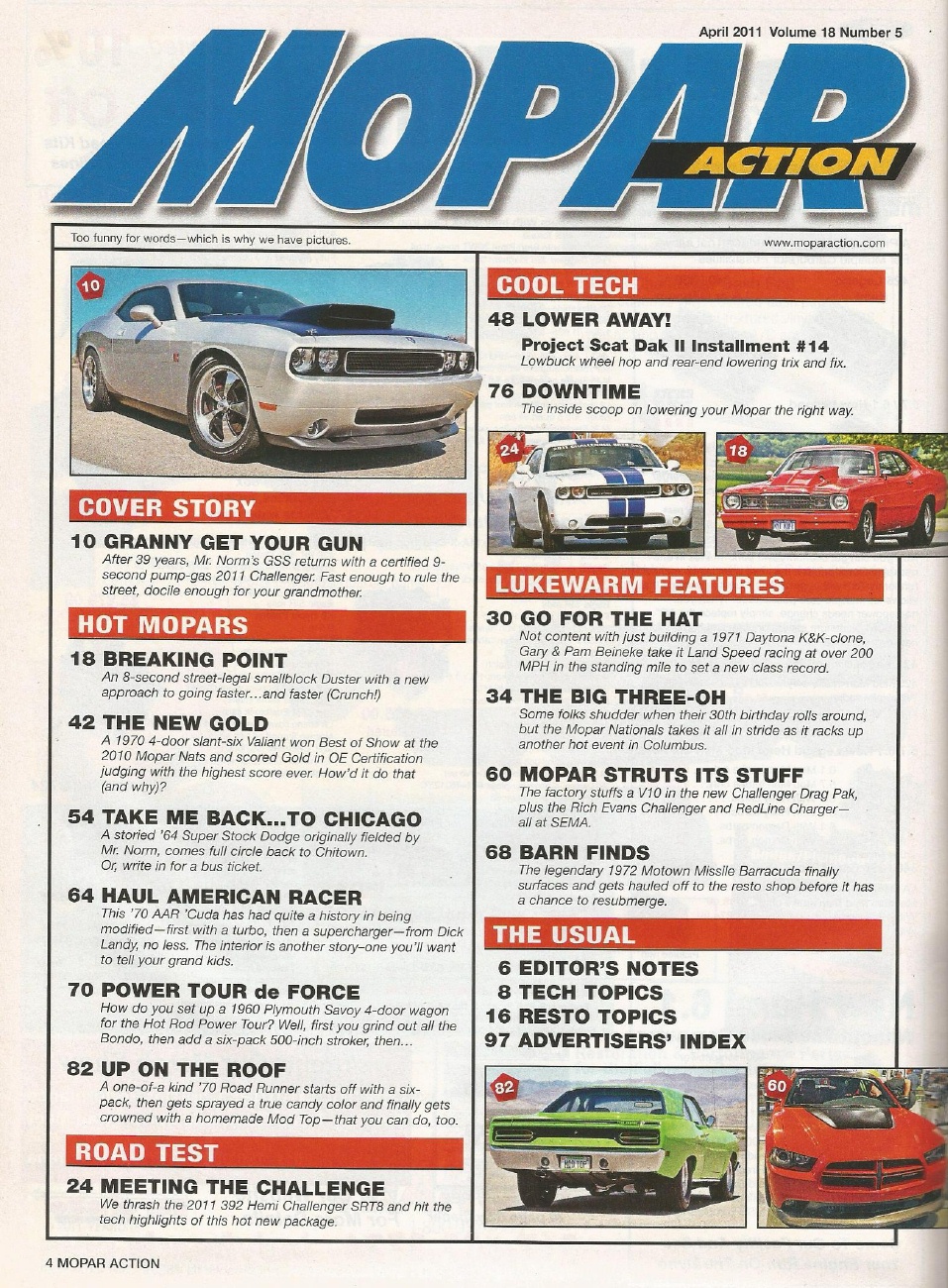 Reviews MOPAR ACTION 2011 APR - NEW 392 CHALLENGER, AAR, V10 CHALLENGER*