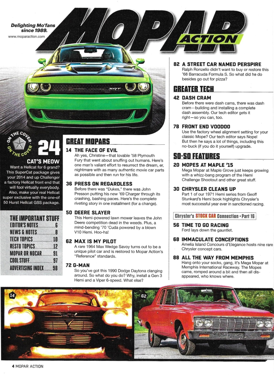 Reviews MOPAR ACTION 2016 FEB - '69 CHARGER, HELLCATS FOR $6K,'64 MAX WEDGE SAVOY PILOT