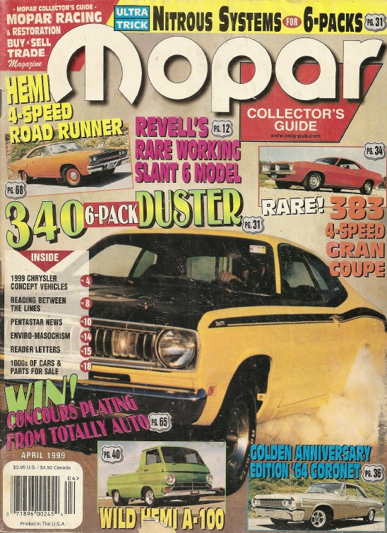 Reviews MOPAR COLLECTORS GUIDE 1999 APR - RARE 383 GRAN COUPE, SICK HEMI A-100