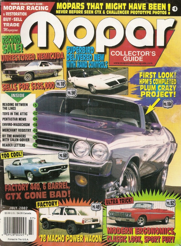 Reviews MOPAR COLLECTORS GUIDE 2002 JULY - A 78 MACHO POWER WAGON, HEMI CUDA