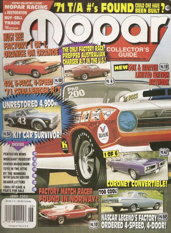 Reviews MOPAR COLLECTORS GUIDE 2002 JUNE - FACTORY AUSTRALIAN CHARGER RT RACECAR