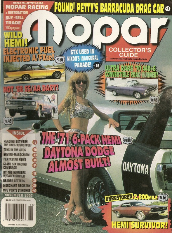 Reviews MOPAR COLLECTORS GUIDE 2002 NOV - PETTYs 65 DRAG RACING BARRACUDA