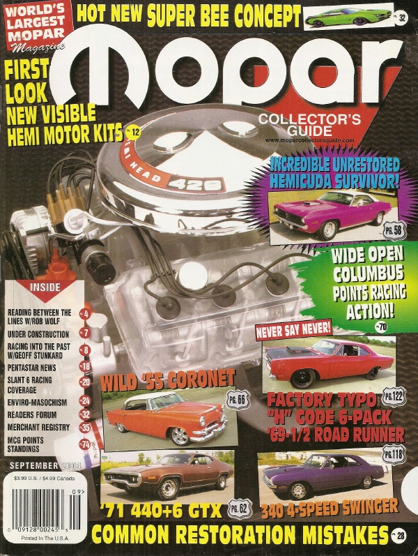 Reviews MOPAR COLLECTORS GUIDE 2004 SEPT - 55 CORONET, H CODE 440-6 ROAD RUNNERS