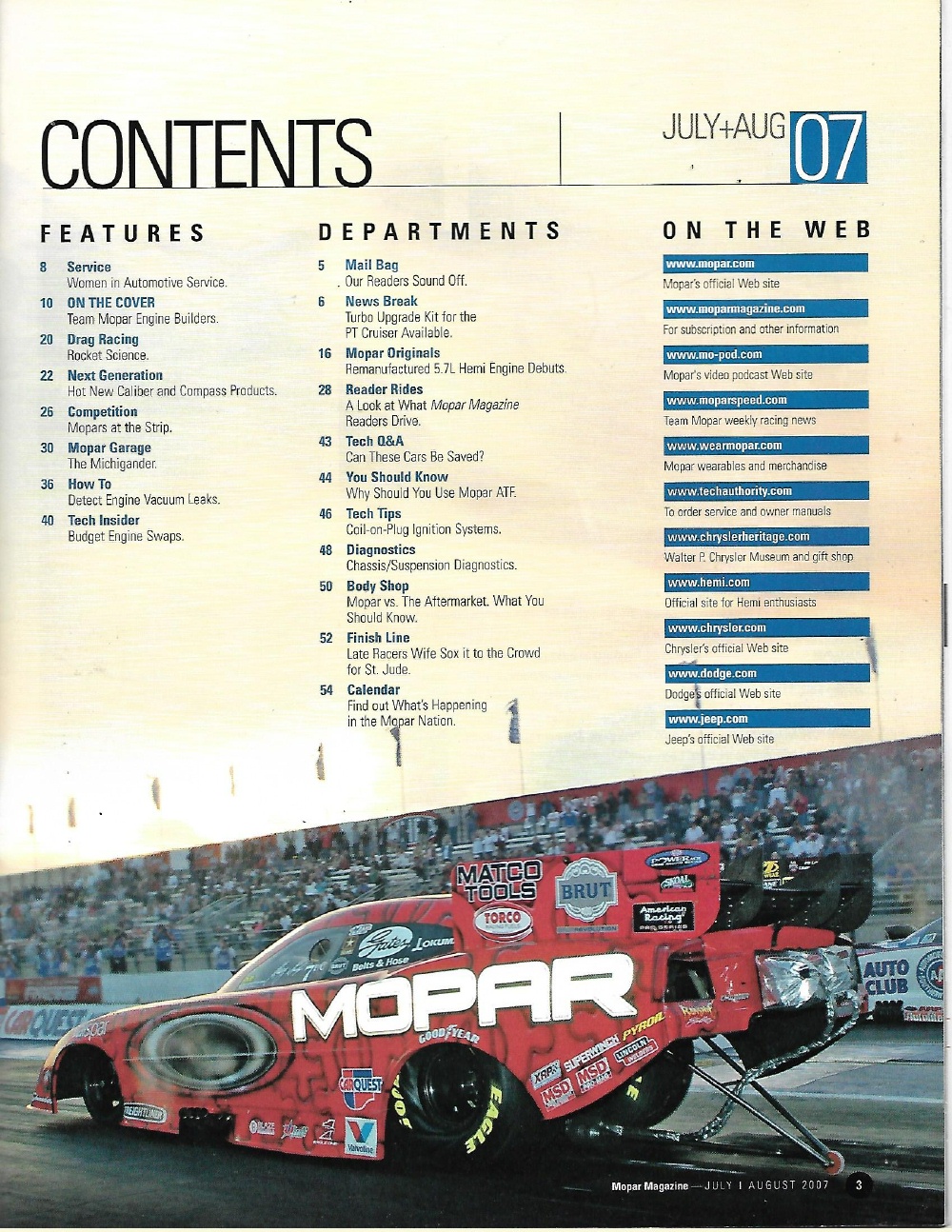Reviews MOPAR MAGAZINE 2007 JULY - TEAM MOPAR, VACUUM LEAKS, MOPARS AT THE STRIP