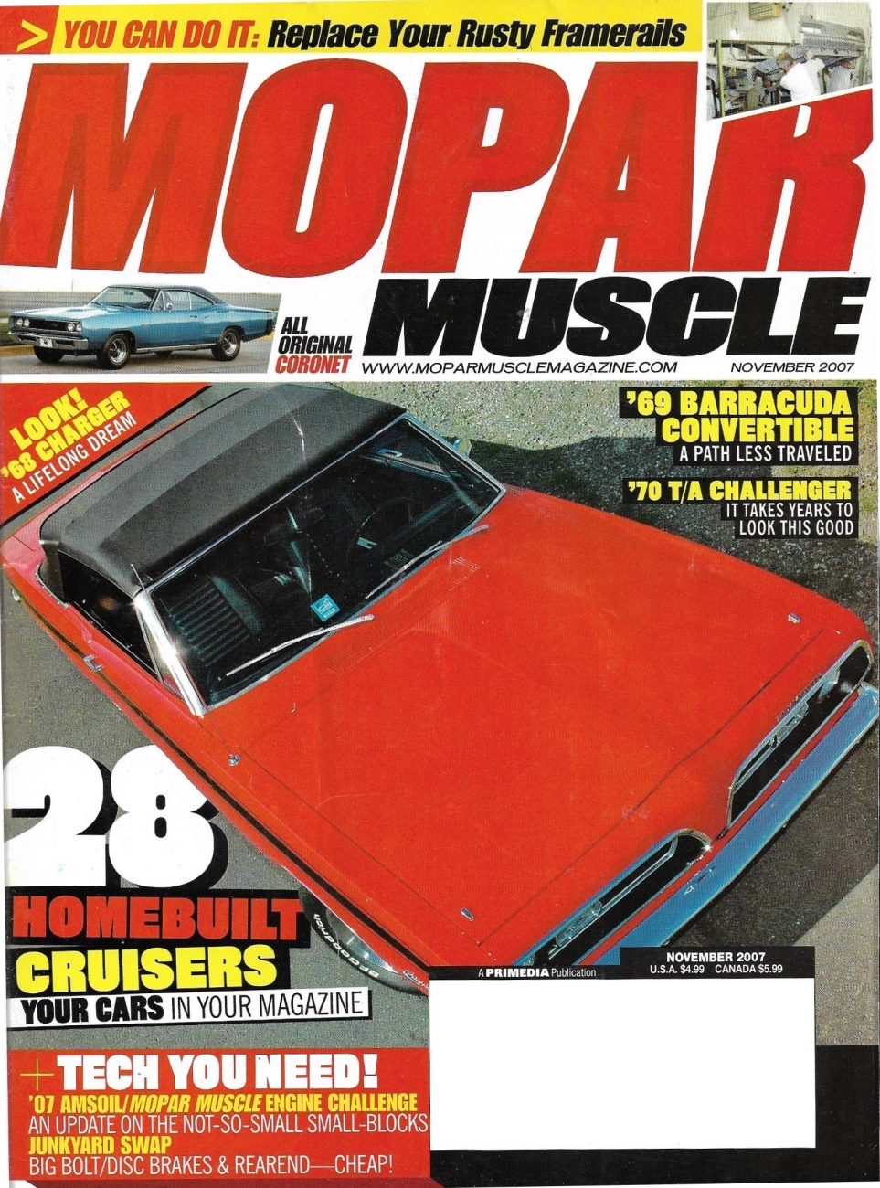 MOPAR MUSCLE 2007 NOV - BLOWN HEMI CHARGER, '70 T/A