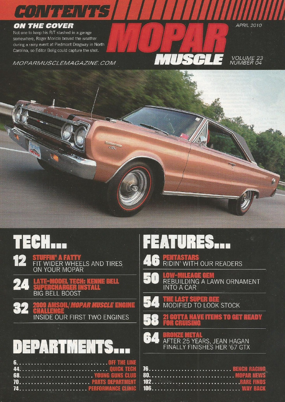 MOPAR MUSCLE 2010 APR - LAST SUPER BEE, KENNE BELL INSTALL, 67 GTX Convt
