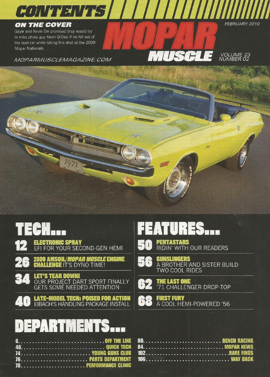 MOPAR MUSCLE 2010 FEB - EFI, SUSPENSION & STROKER UPGRADES, HOT ENGINE