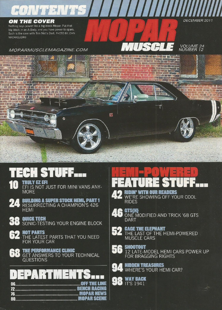 MOPAR MUSCLE 2011 DEC - HEMI GTS, EASY EFI INSTALL, NEW HEMI SHOOTOUT
