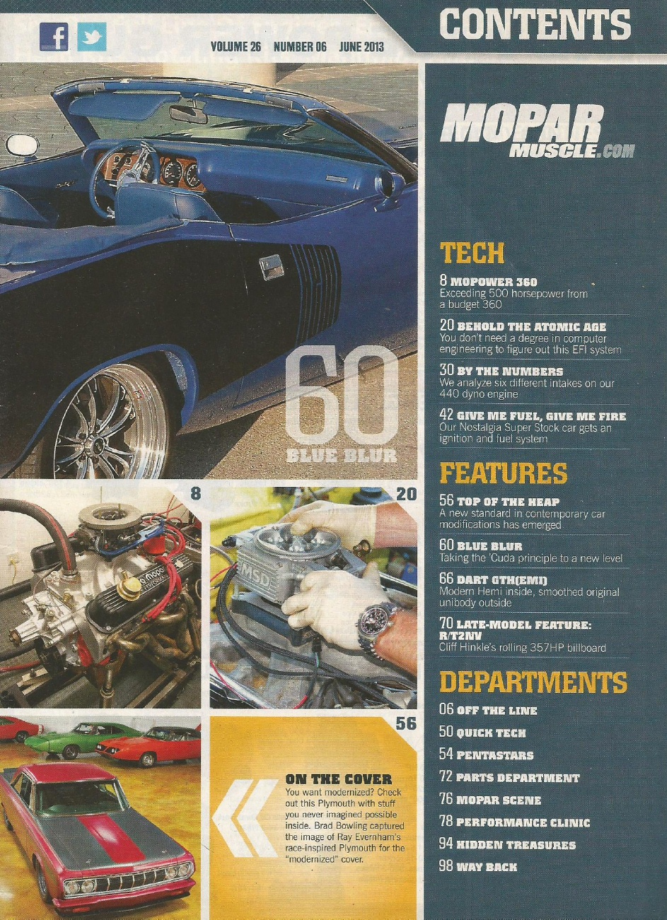 Reviews MOPAR MUSCLE 2013 JUNE - NASTY 360, 440 INTAKES TESTED, 63 HEMI DART*