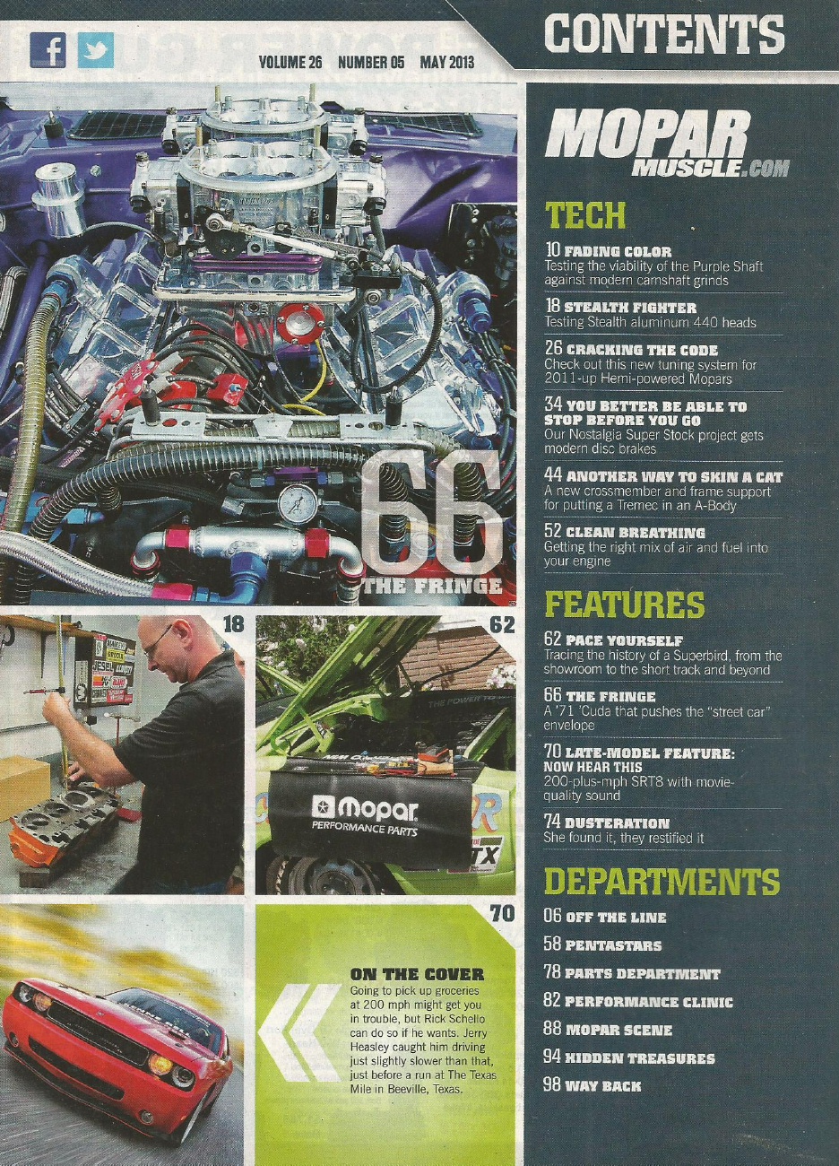 MOPAR MUSCLE 2013 MAY - WILD KENNE BELL CHALLENGER, 440 HEAD TESTS