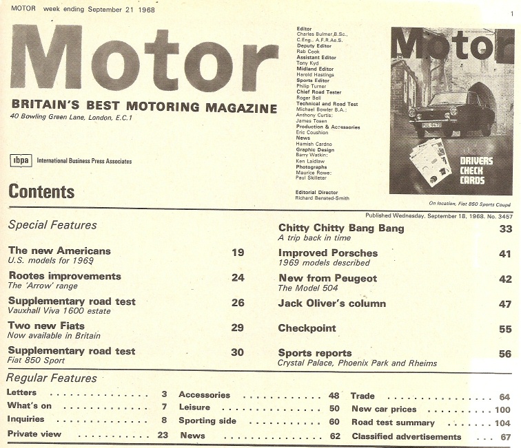Reviews MOTOR 1968 SEPT 21 - FIAT 850 SPORT COUPE, VIVA 1600, PORSCHE, ROOTES
