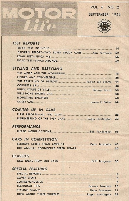 Reviews MOTOR LIFE 1956 SEPT - NEW CARS, CORVETTE SR-2, ARNODE, ELKART LAKE, BONNEVILLE