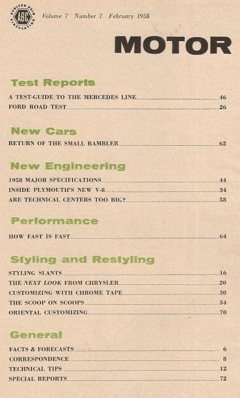 Reviews MOTOR LIFE 1958 FEB - GOLDEN COMMANDO, MERCEDES TEST, RAMBLER AMERICAN
