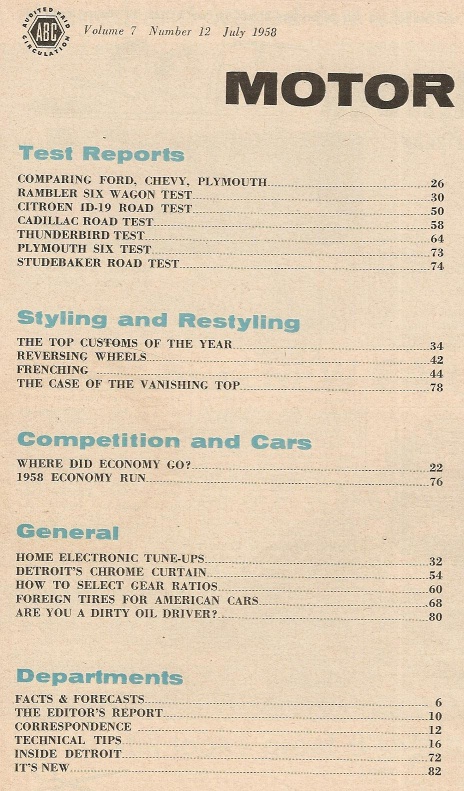 Reviews MOTOR LIFE 1958 JULY - BEST CUSTOMS, ID-19, FORD V CHEVY V PLYMOUTH