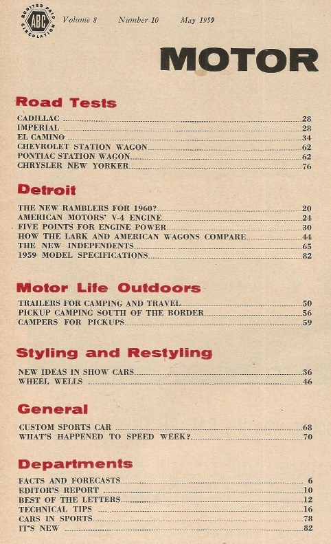 Reviews MOTOR LIFE 1959 MAY - CADDY, IMPERIAL, EL CAMINO, NEW YORKER TESTED, AMC V-4