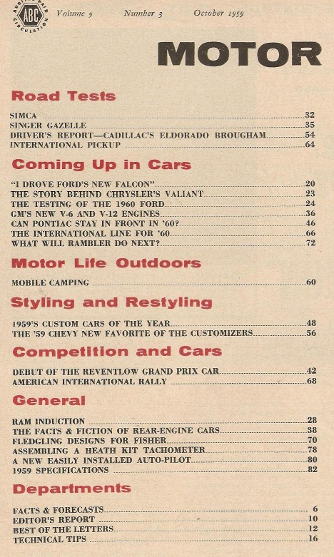 Reviews MOTOR LIFE 1959 OCT - FALCON TEST, SIMPCA, SINGER GAZELLE, NEW GM V-6 & V12