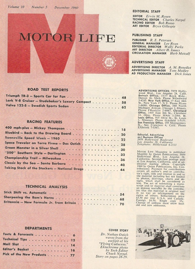 Reviews MOTOR LIFE 1960 DEC - BONNEVILLE, NAT DRAGS, DARLINGTON,LARK V-8, TR3,122-S