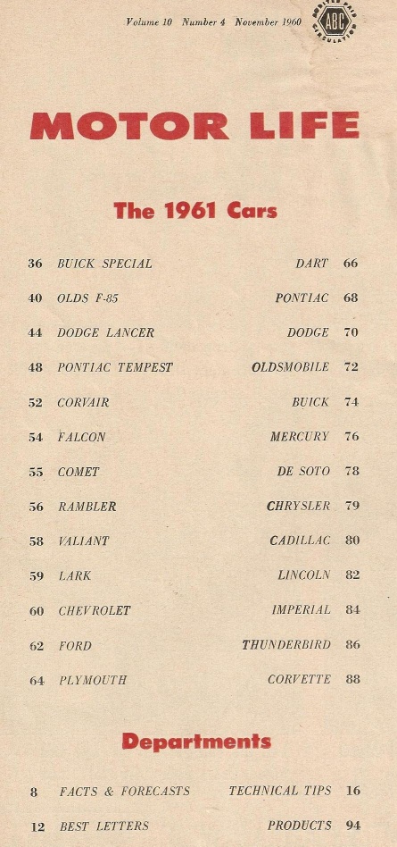 Reviews MOTOR LIFE 1960 NOV - NEW COMPACTS, NEW '61 CARS