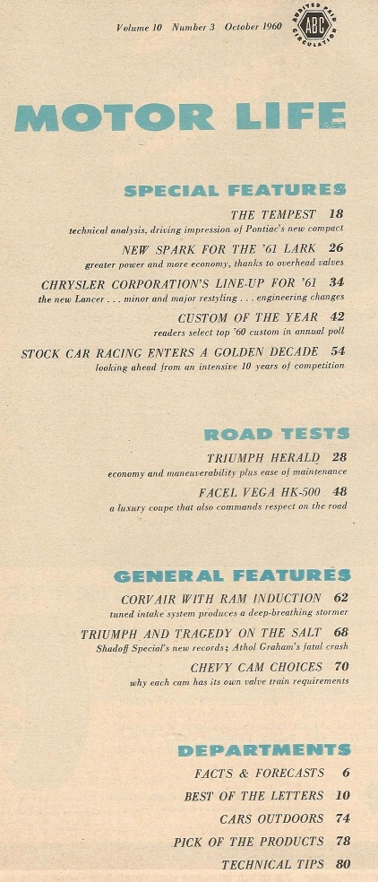 Reviews MOTOR LIFE 1960 OCT - NEW TEMPEST,CUSTOMS,FACEL VIGA HK-500,ATHOL GRAHAM