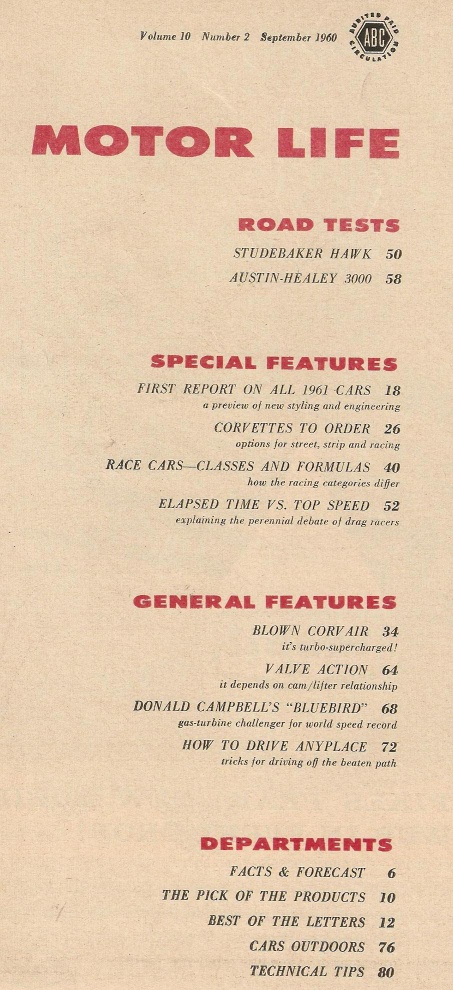 Reviews MOTOR LIFE 1960 SEPT - CORVETTE SPECIAL, NEW '61 CARS